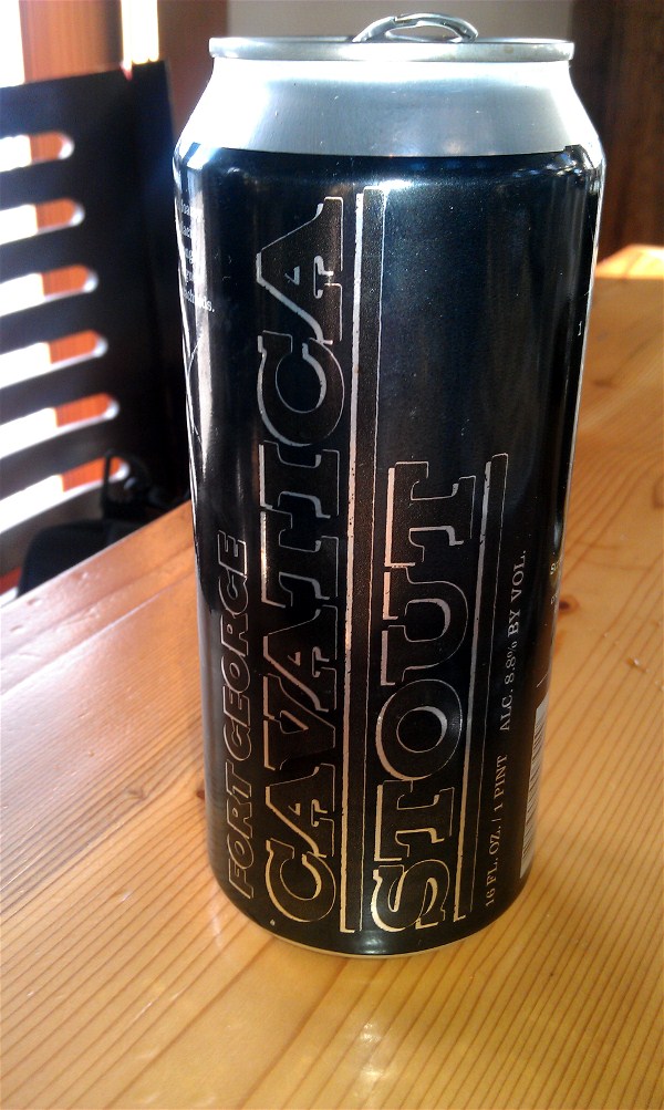 Bill wondered why they served the local Fort George Cavitica Stout in a can until we saw the can.