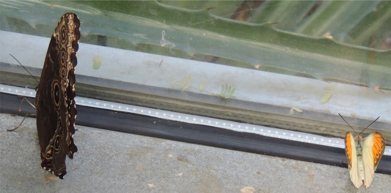 The butterfly exhibit is a Tropical one, so it is inside a hot and humid area. We went in and it took a while for the camera to be usable, it kept fogging up. Eventually we were able to get some nice photos of these butterfiles.