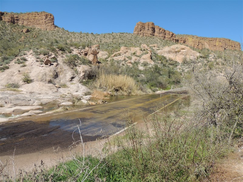 At Tortilla Flat the water was running over the highway. There was also a wait for a table since it was a beautiful day.