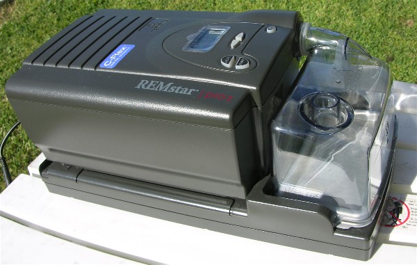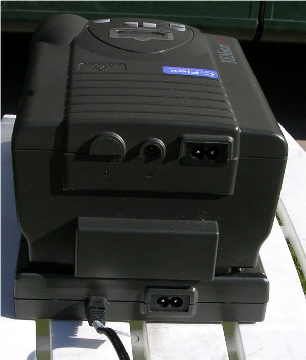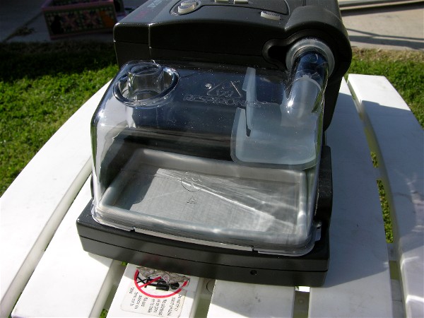 The CPAP is two parts, the heated humidifier base attaches to the bottom and has its own power plug with a pigtail to attach to the main unit. The main unit also has a 12volt cord location, but we don't have the 12volt cord. Here is the back where the power connects: