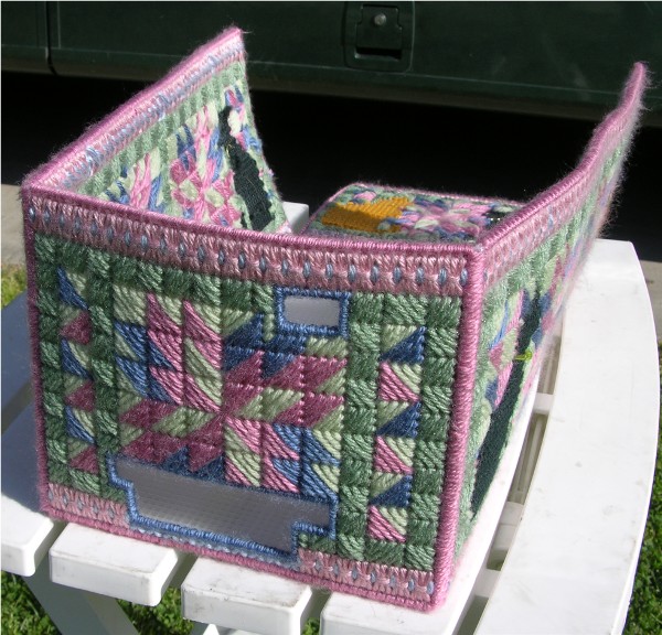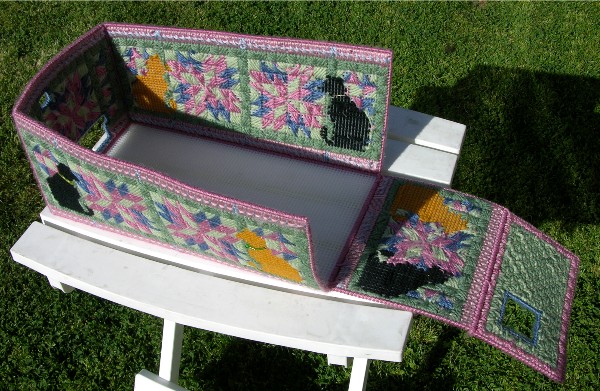 The back with the holes for the power cords (if we ever need the 12volt cord Diane will have to make a new cover):
