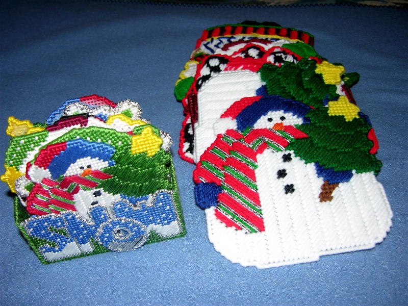 The ones on the left are 10-mesh using floss for the "yarn" and the ones on the right are 7-mesh using worsted weight yarn.